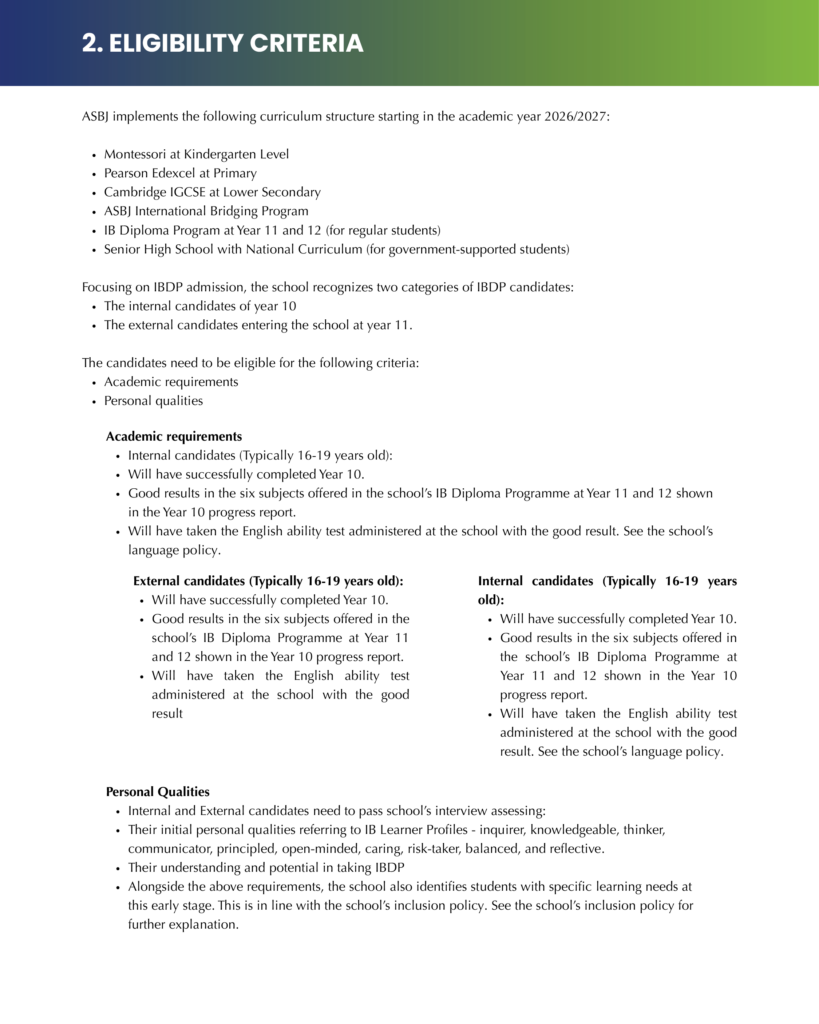 IBDP Admission Policy